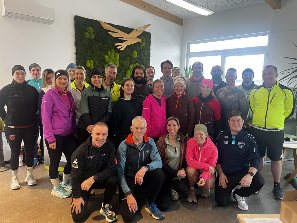 Nach dem Lauf konnten sich alle Teilnehmer:innen in den Büroräumen der Firma Avados aufwärmen – vielen Dank an Avados für die Bereitstellung der Räumlichkeiten! So mussten wir nicht in der Kälte stehen und konnten den Lauftreff bei einem Glas Sekt und ein paar Snacks gemütlich ausklingen lassen. Dies bot die perfekte Gelegenheit, sich weiter kennenzulernen und Gespräche zu vertiefen.